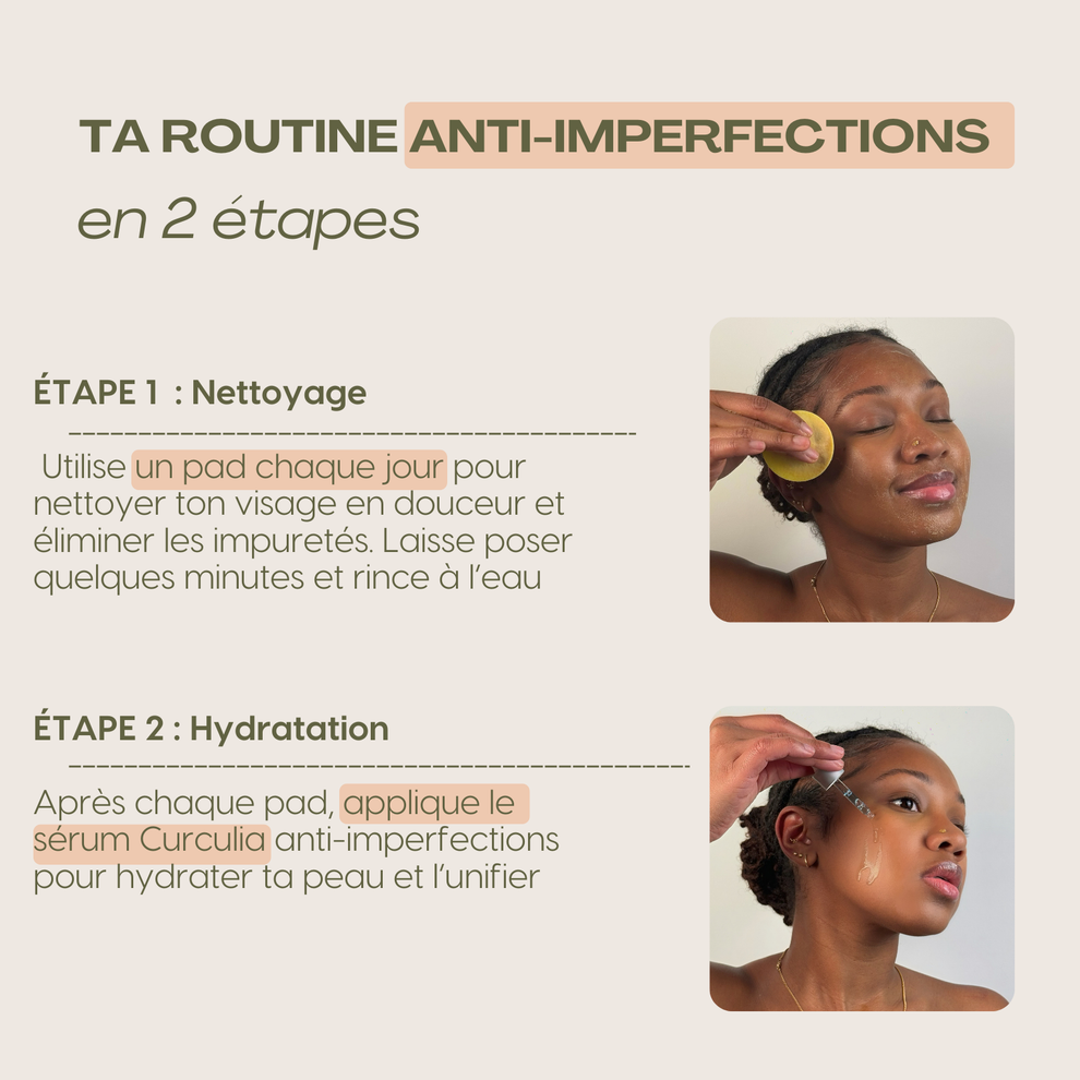La plupart des clients constatent une réduction des boutons dès 3 jours et une peau plus uniforme en 7 jours. Pour des résultats optimaux, utilisez un pad chaque soir pendant 4 semaines.